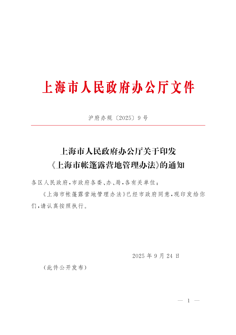 上海市人民政府辦公廳關(guān)于印發(fā)《上海市帳篷露營地管理辦法》的通知