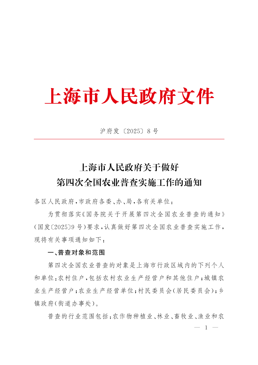 ??為貫徹落實(shí)《國務(wù)院關(guān)于開展第四次全國農(nóng)業(yè)普查的通知》(國發(fā)〔2025〕9號)要求,認(rèn)真做好第四次全國農(nóng)業(yè)普查實(shí)施工作,現(xiàn)將有關(guān)事項(xiàng)通知如下: