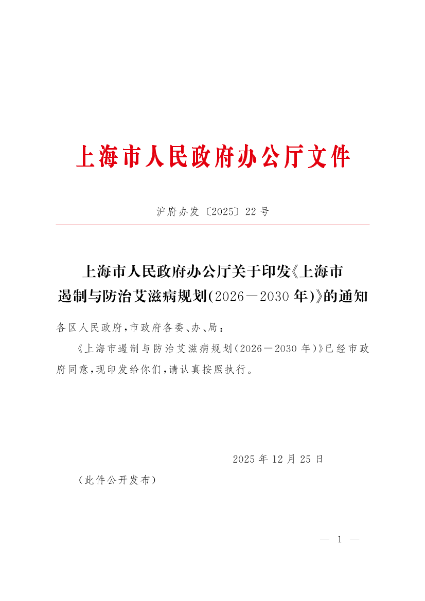 ??《上海市遏制與防治艾滋病規(guī)劃(2026-2030年)》已經(jīng)市政府同意,現(xiàn)印發(fā)給你們,請(qǐng)認(rèn)真按照?qǐng)?zhí)行。