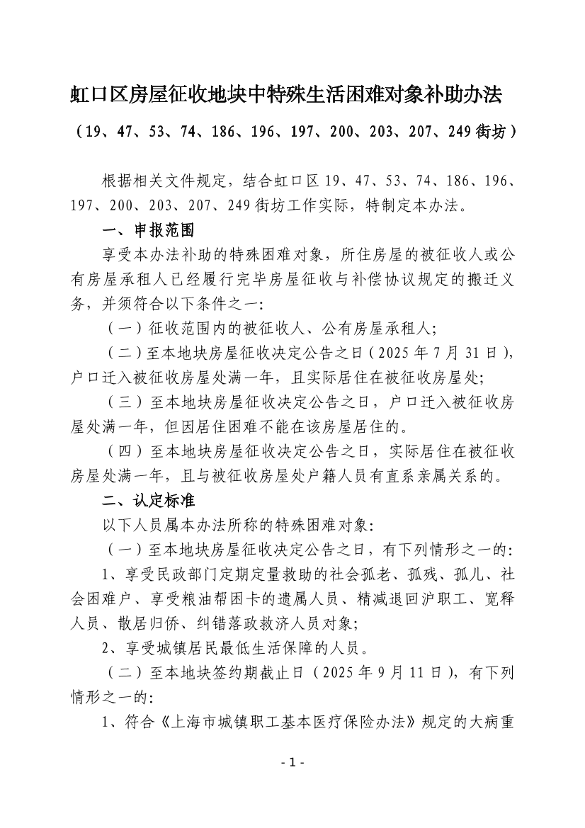 ??(一)2025年10月9日至2026年10月9日止,由特殊困難對象本人自行向?qū)俚鼐游瘯ň唧w地址見附件)提出書面申請,并提供真實有效的證明材料。未在規(guī)定時間提出書面申請的,視作放棄。