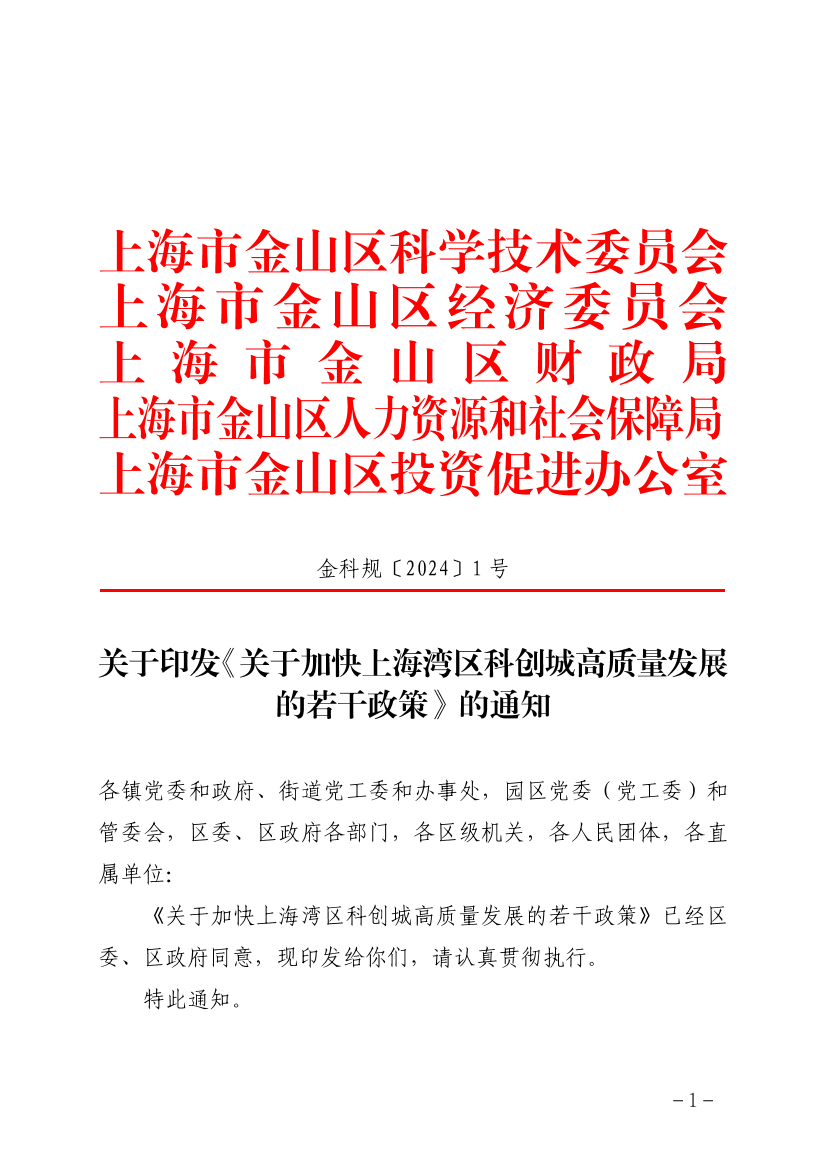 ??為深入貫徹落實(shí)《金山區(qū)加快重點(diǎn)區(qū)域轉(zhuǎn)型升級(jí)著力推動(dòng)高質(zhì)量發(fā)展實(shí)施方案(2023-2025年)》(金委發(fā)〔2023〕7號(hào))精神,將上海灣區(qū)科創(chuàng)城(以下簡稱“科創(chuàng)城”)建設(shè)成為一座高端人才集聚、高端科研集成、先進(jìn)成果轉(zhuǎn)化、新興產(chǎn)業(yè)匯聚、金融科技發(fā)展、品質(zhì)生活融合的生態(tài)智慧科創(chuàng)城,特制定本政策。