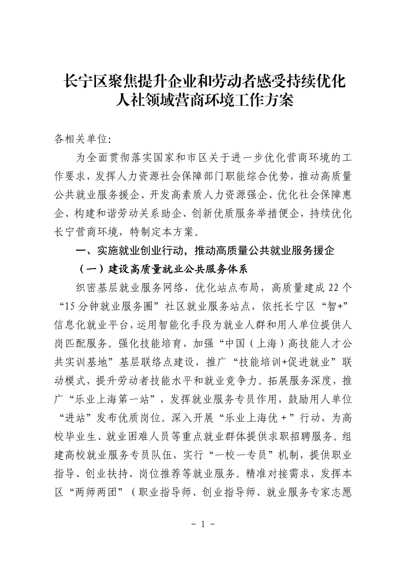 ??為全面貫徹落實國家和市區(qū)關(guān)于進一步優(yōu)化營商環(huán)境的工作要求,發(fā)揮人力資源社會保障部門職能綜合優(yōu)勢,推動高質(zhì)量公共就業(yè)服務(wù)援企、開發(fā)高素質(zhì)人力資源強企、優(yōu)化社會保障惠企、構(gòu)建和諧勞動關(guān)系助企、創(chuàng)新優(yōu)質(zhì)服務(wù)舉措便企,持續(xù)優(yōu)化長寧營商環(huán)境,特制定本方案。