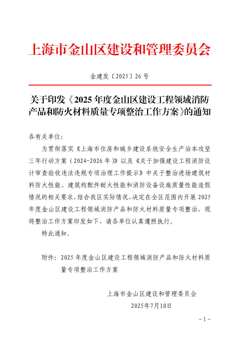 ??附件:2025年度金山區(qū)建設(shè)工程領(lǐng)域消防產(chǎn)品和防火材料質(zhì)量專項(xiàng)整治工作方案