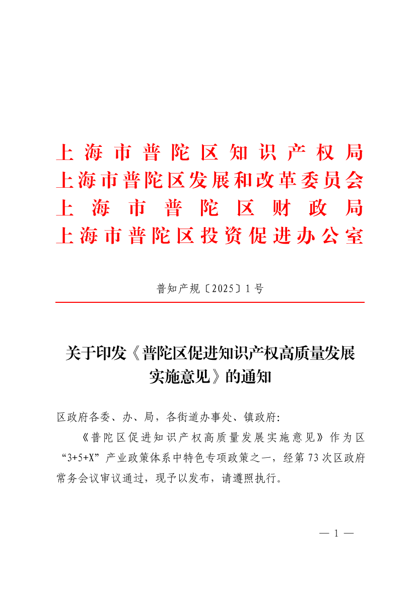 普陀區(qū)促進知識產(chǎn)權(quán)高質(zhì)量發(fā)展實施意見
