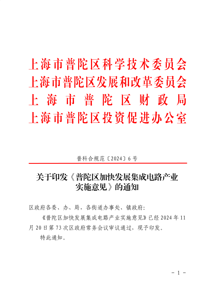 ??《普陀區(qū)加快發(fā)展集成電路產(chǎn)業(yè)實施意見》已經(jīng)2024年11月20日第73次區(qū)政府常務(wù)會議審議通過,現(xiàn)予印發(fā)。