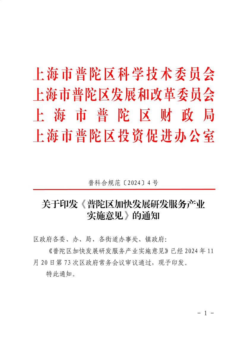 ??《普陀區(qū)加快發(fā)展研發(fā)服務(wù)產(chǎn)業(yè)實(shí)施意見》已經(jīng)2024年11月20日第73次區(qū)政府常務(wù)會(huì)議審議通過,現(xiàn)予印發(fā)。