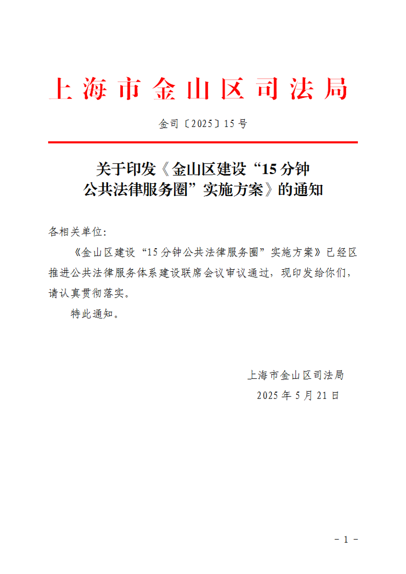 金山區(qū)建設(shè)“15分鐘公共法律服務(wù)圈”實(shí)施方案