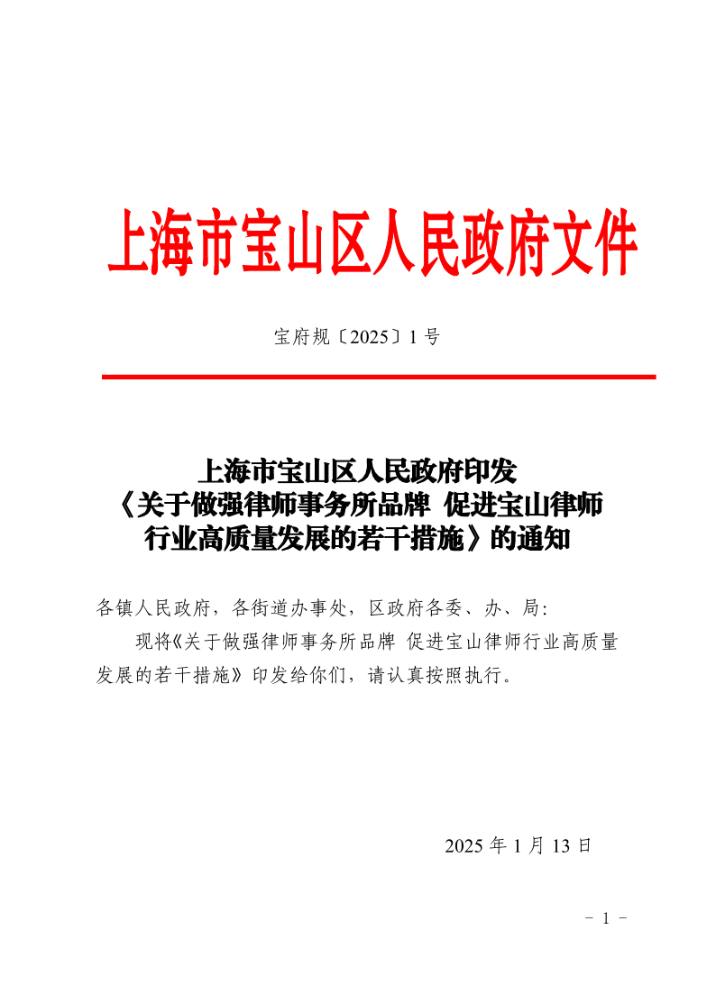 ??現(xiàn)將《關(guān)于做強(qiáng)律師事務(wù)所品牌 促進(jìn)寶山律師行業(yè)高質(zhì)量發(fā)展的若干措施》印發(fā)給你們,請(qǐng)認(rèn)真按照?qǐng)?zhí)行。