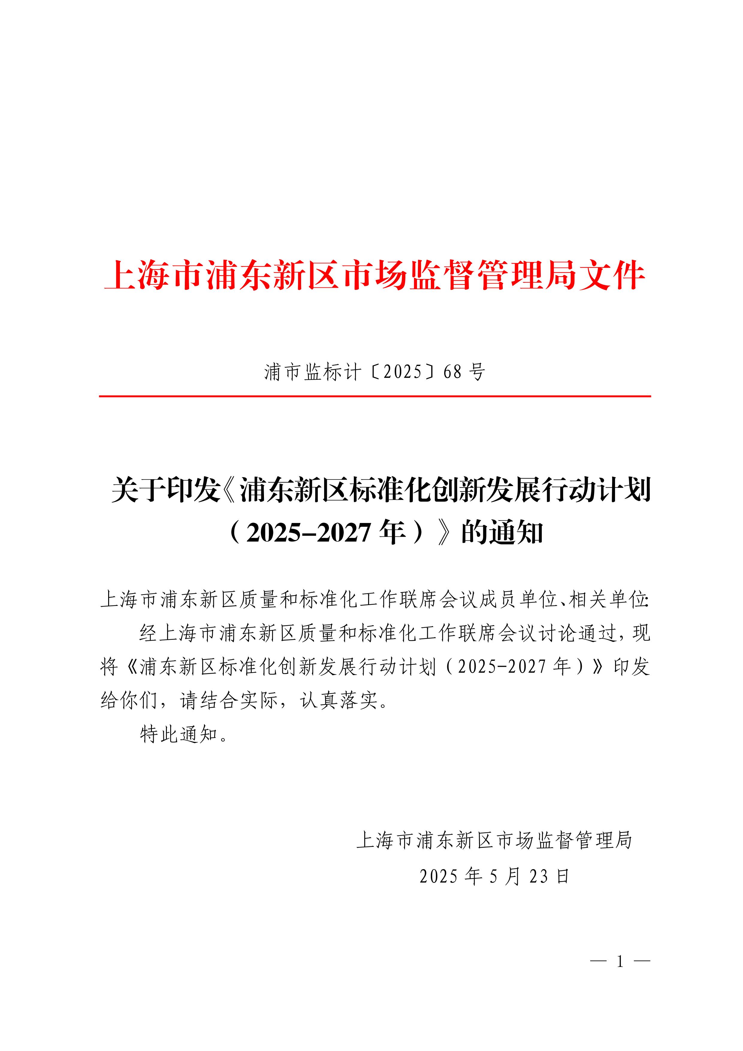 關(guān)于印發(fā)《浦東新區(qū)標(biāo)準(zhǔn)化創(chuàng)新發(fā)展行動計(jì)劃(2025-2027年)》的通知
