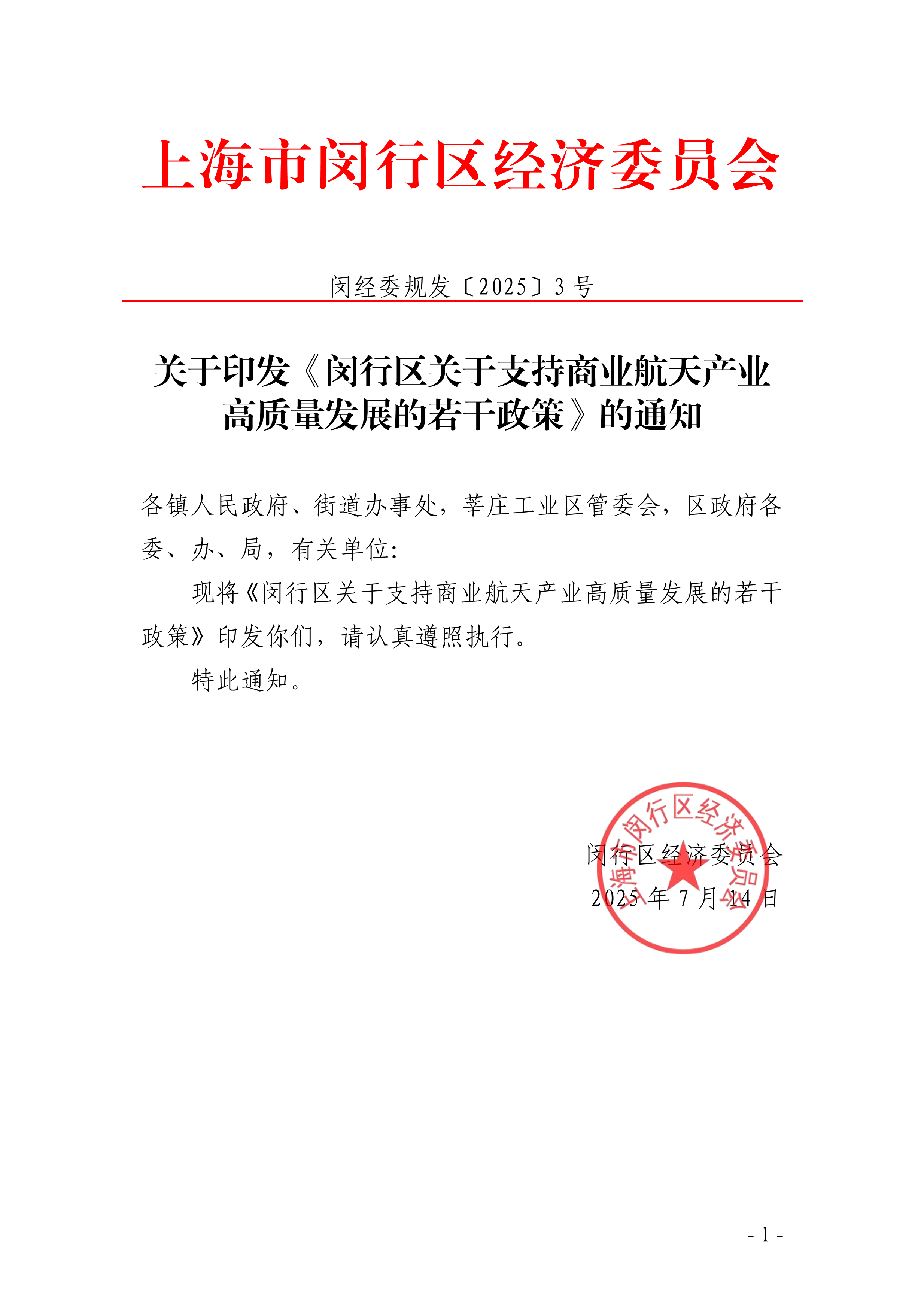 ??現(xiàn)將《閔行區(qū)關(guān)于支持商業(yè)航天產(chǎn)業(yè)高質(zhì)量發(fā)展的若干政策》印發(fā)你們,請(qǐng)認(rèn)真遵照?qǐng)?zhí)行。