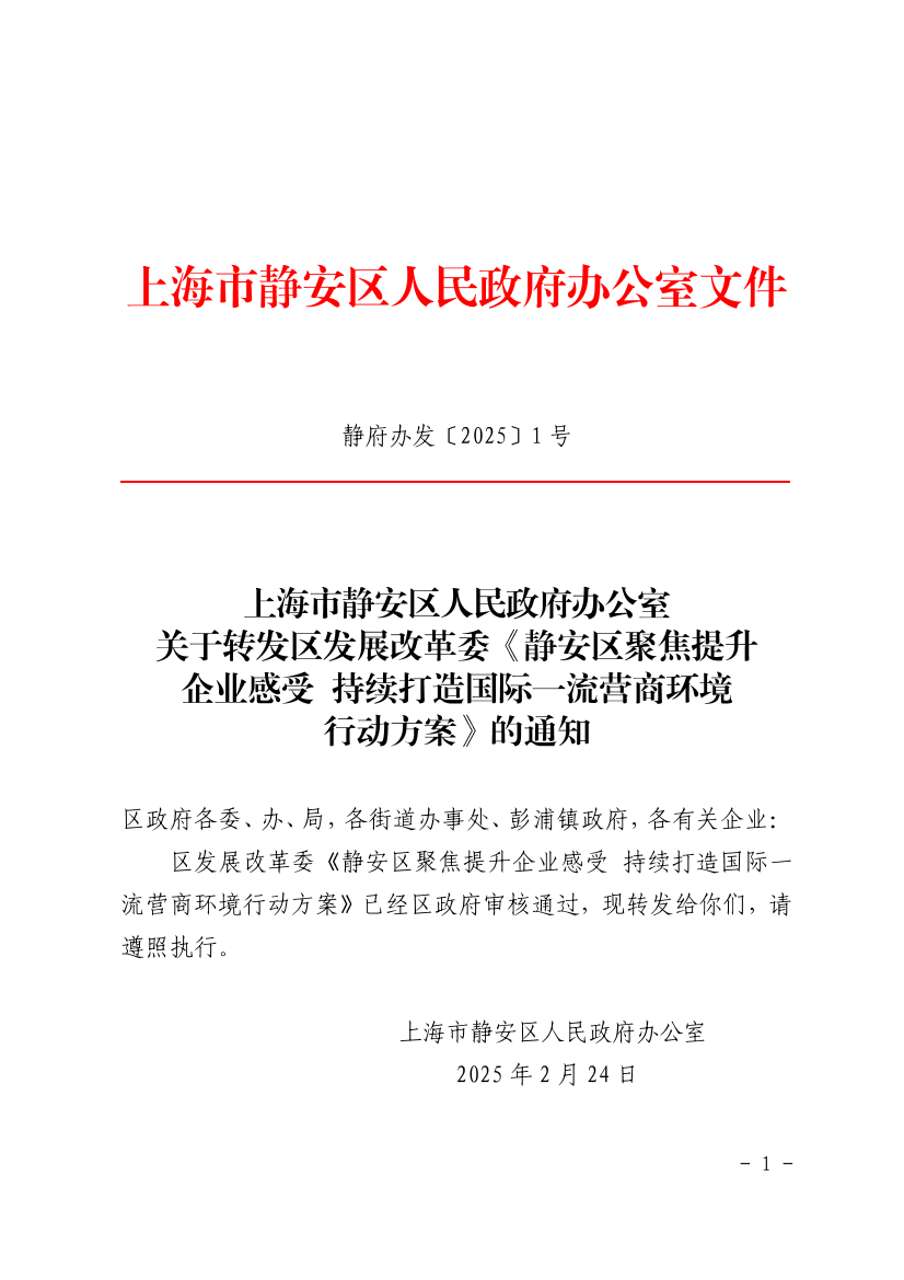 ??區(qū)發(fā)展改革委《靜安區(qū)聚焦提升企業(yè)感受 持續(xù)打造國際一流營商環(huán)境行動方案》已經(jīng)區(qū)政府審核通過,現(xiàn)轉(zhuǎn)發(fā)給你們,請遵照執(zhí)行。