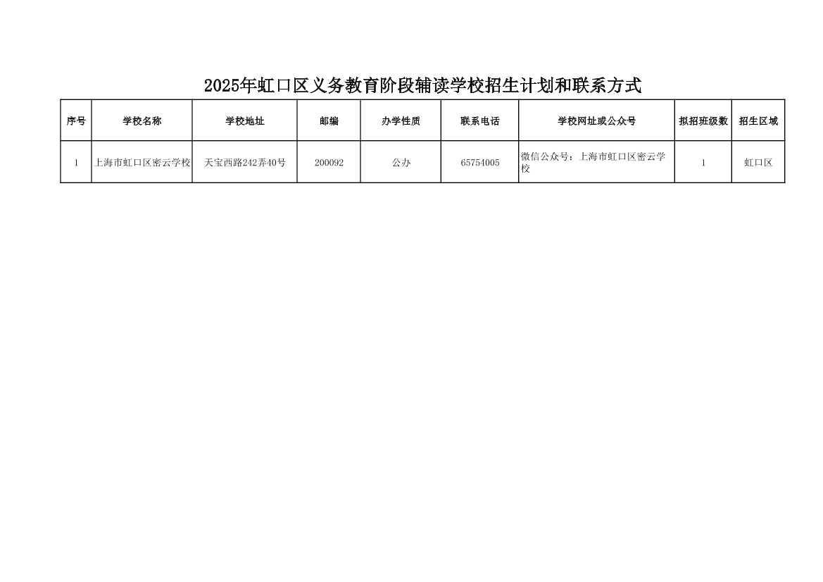 2025年虹口區(qū)義務(wù)教育階段輔讀學(xué)校招生計劃和聯(lián)系方式