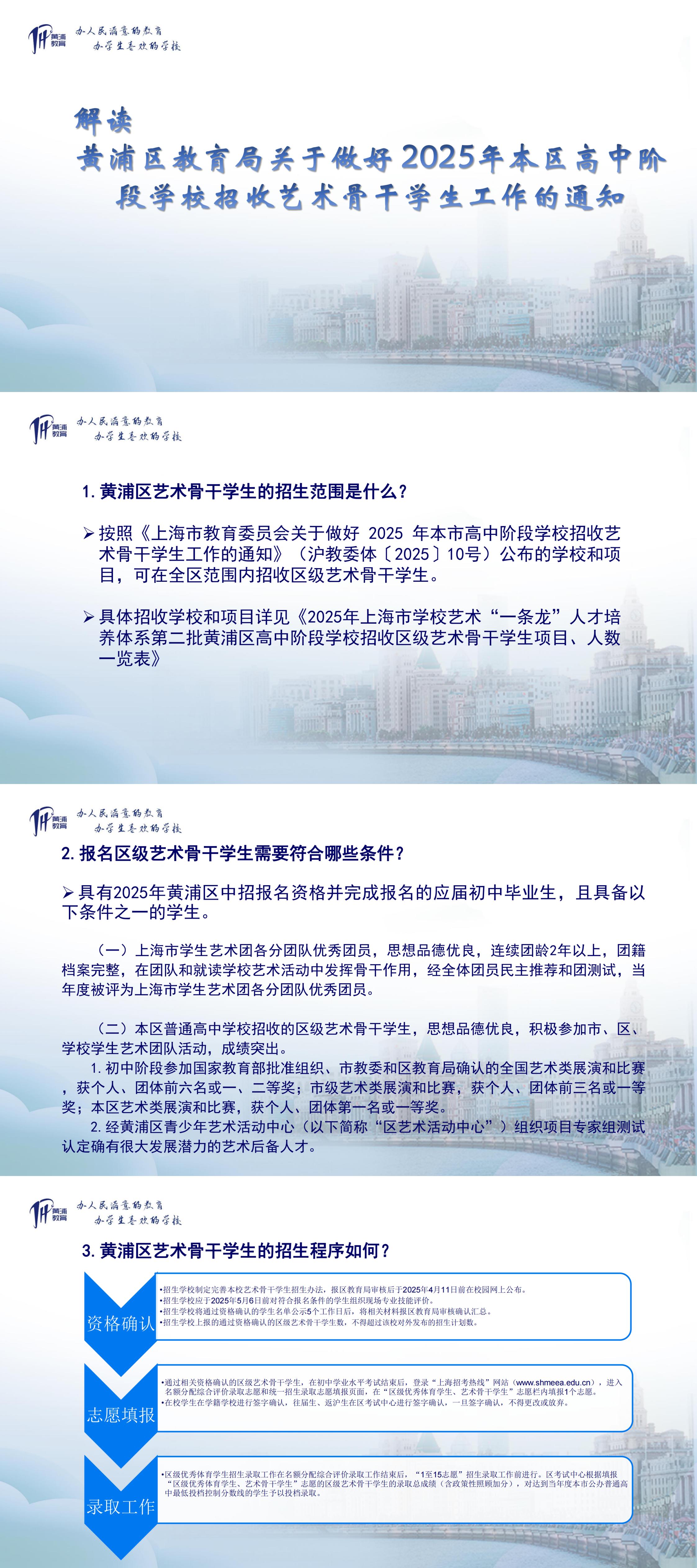 解讀《黃浦區(qū)教育局關(guān)于做好2025年本區(qū)高中階段學(xué)校招收藝術(shù)骨干學(xué)生工作的通知》