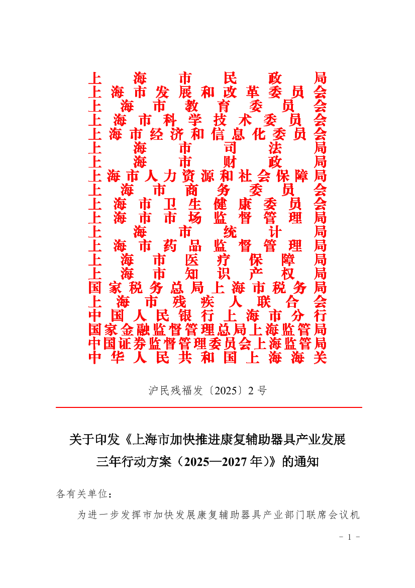 ??為進(jìn)一步發(fā)揮市加快發(fā)展康復(fù)輔助器具產(chǎn)業(yè)部門聯(lián)席會(huì)議機(jī)制,聚焦促創(chuàng)新、擴(kuò)消費(fèi),用足用好各部門扶持政策,形成工作合力?,F(xiàn)將《上海市加快推進(jìn)康復(fù)輔助器具產(chǎn)業(yè)發(fā)展三年行動(dòng)方案(2025—2027年)》印發(fā)給你們,請認(rèn)真按照執(zhí)行。