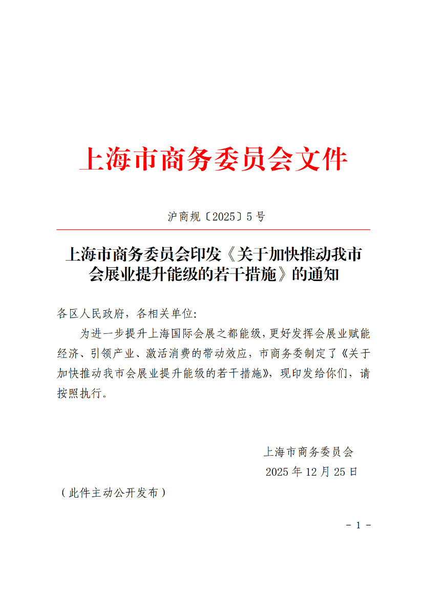 ??為進(jìn)一步提升上海國際會展之都能級,更好發(fā)揮會展業(yè)賦能經(jīng)濟(jì)、引領(lǐng)產(chǎn)業(yè)、激活消費(fèi)的帶動效應(yīng),市商務(wù)委制定了《關(guān)于加快推動我市會展業(yè)提升能級的若干措施》,現(xiàn)印發(fā)給你們,請按照執(zhí)行。