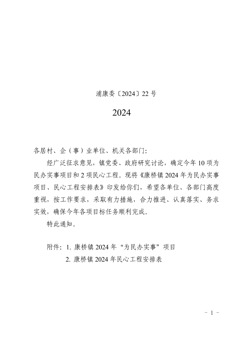 關(guān)于印發(fā)《康橋鎮(zhèn)2024年為民辦實(shí)事項(xiàng)目、民心工程安排表》的通知