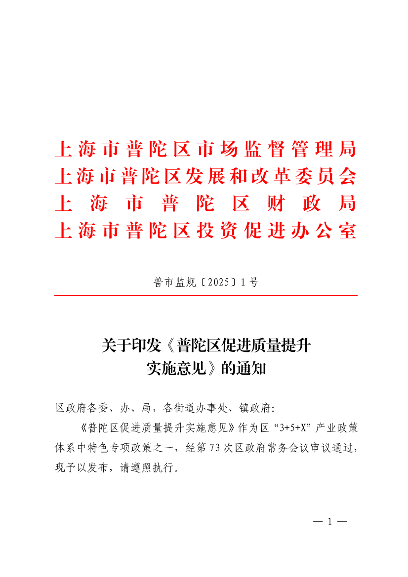 普陀區(qū)促進質(zhì)量提升實施意見