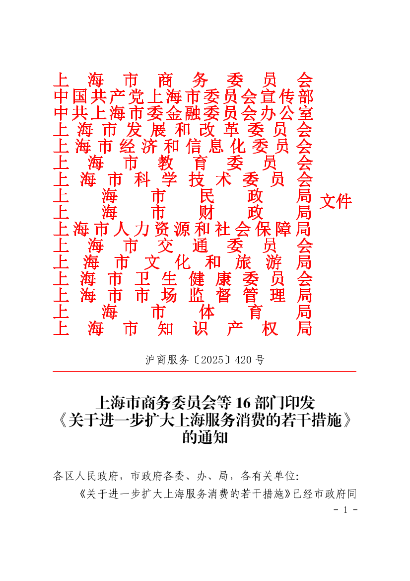 ??《關(guān)于進(jìn)一步擴(kuò)大上海服務(wù)消費(fèi)的若干措施》已經(jīng)市政府同意,現(xiàn)印發(fā)給你們,請(qǐng)認(rèn)真貫徹執(zhí)行。