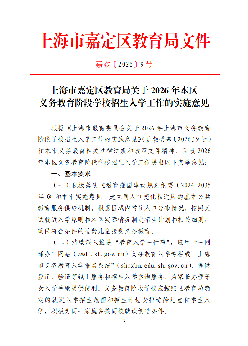 ??根據(jù)《上海市教育委員會(huì)關(guān)于2026年上海市義務(wù)教育階段學(xué)校招生入學(xué)工作的實(shí)施意見(jiàn)》(滬教委基〔2026〕9號(hào))和本市義務(wù)教育相關(guān)法律法規(guī)和政策文件精神,現(xiàn)就2026年本區(qū)義務(wù)教育階段學(xué)校招生入學(xué)工作提出以下實(shí)施意見(jiàn):