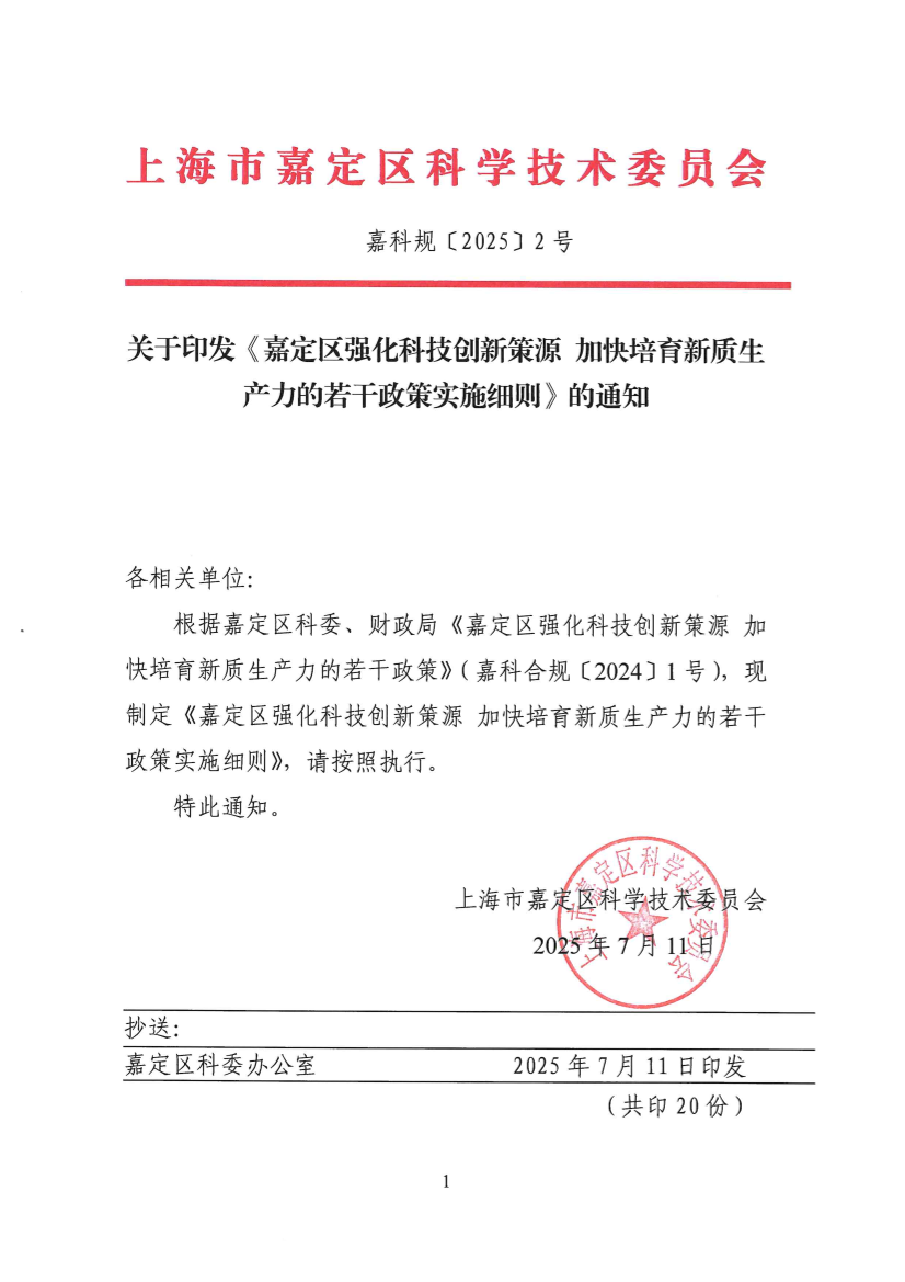 ??根據(jù)嘉定區(qū)科委、財(cái)政局《嘉定區(qū)強(qiáng)化科技創(chuàng)新策源 加快培育新質(zhì)生產(chǎn)力的若干政策》(嘉科合規(guī)〔2024〕1號(hào)),現(xiàn)制定《嘉定區(qū)強(qiáng)化科技創(chuàng)新策源 加快培育新質(zhì)生產(chǎn)力的若干政策實(shí)施細(xì)則》,請(qǐng)按照?qǐng)?zhí)行。