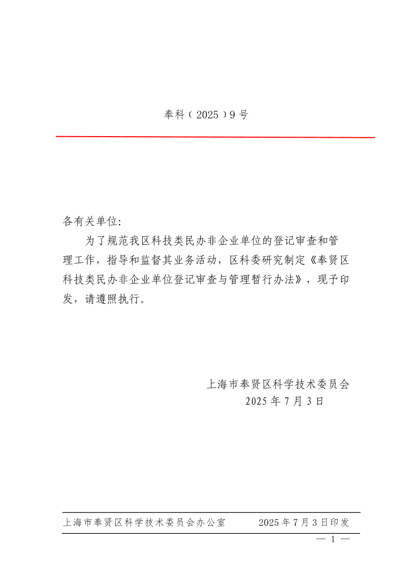 奉賢區(qū)科技類民辦非企業(yè)單位登記審查與管理暫行辦法
