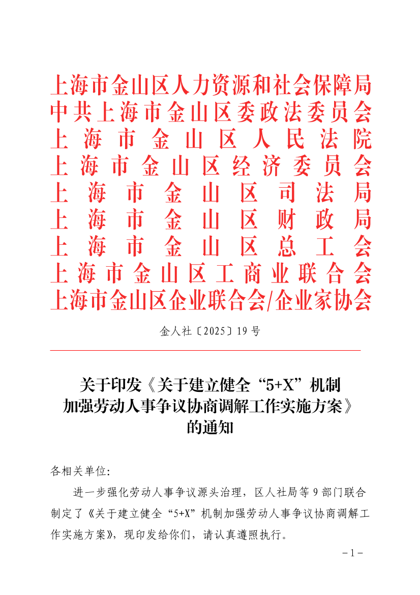 ??進一步強化勞動人事爭議源頭治理, 區(qū)人社局等9部門聯(lián)合制定了《關(guān)于建立健全“5+X”機制加強勞動人事爭議協(xié)商調(diào)解工作實施方案》,現(xiàn)印發(fā)給你們,請認(rèn)真遵照執(zhí)行。