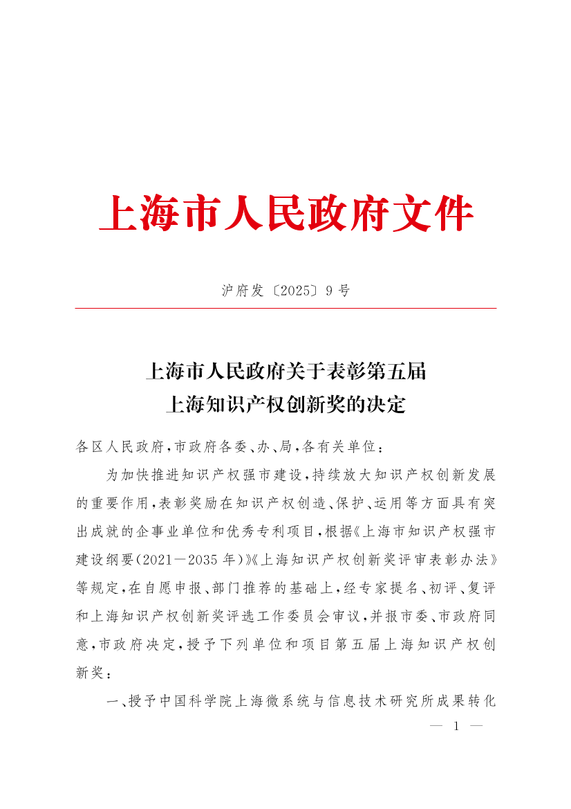 ??為加快推進(jìn)知識(shí)產(chǎn)權(quán)強(qiáng)市建設(shè),持續(xù)放大知識(shí)產(chǎn)權(quán)創(chuàng)新發(fā)展的重要作用,表彰獎(jiǎng)勵(lì)在知識(shí)產(chǎn)權(quán)創(chuàng)造、保護(hù)、運(yùn)用等方面具有突出成就的企事業(yè)單位和優(yōu)秀專利項(xiàng)目,根據(jù)《上海市知識(shí)產(chǎn)權(quán)強(qiáng)市建設(shè)綱要(2021-2035年)》《上海知識(shí)產(chǎn)權(quán)創(chuàng)新獎(jiǎng)評(píng)審表彰辦法》等規(guī)定,在自愿申報(bào)、部門推薦的基礎(chǔ)上,經(jīng)專家提名、初評(píng)、復(fù)評(píng)和上海知識(shí)產(chǎn)權(quán)創(chuàng)新獎(jiǎng)評(píng)選工作委員會(huì)審議,并報(bào)市委、市政府同意,市政府決定,授予下列單位和項(xiàng)目第五屆上海知識(shí)產(chǎn)權(quán)創(chuàng)新獎(jiǎng):