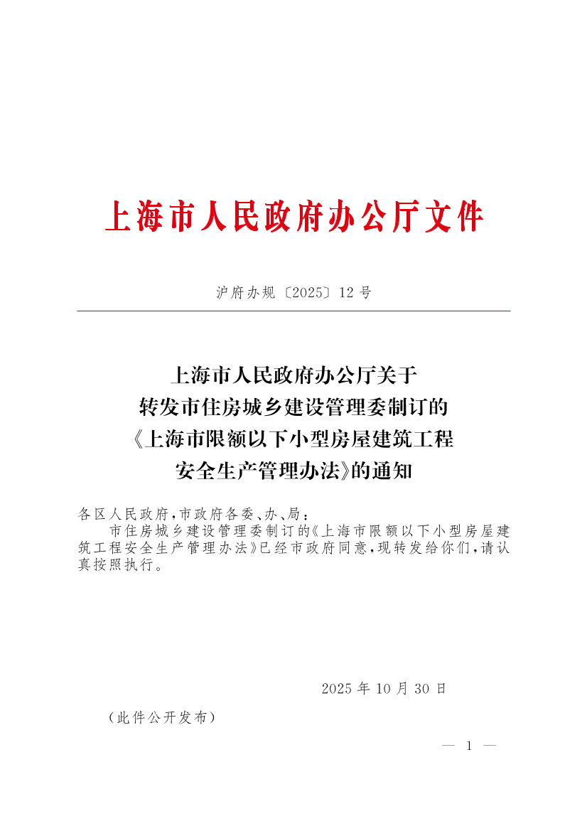 ??第一條 為加強全市限額以下小型房屋建筑工程安全生產(chǎn)管理,根據(jù)《中華人民共和國建筑法》《上海市房屋使用安全管理辦法》等規(guī)定,制定本辦法。