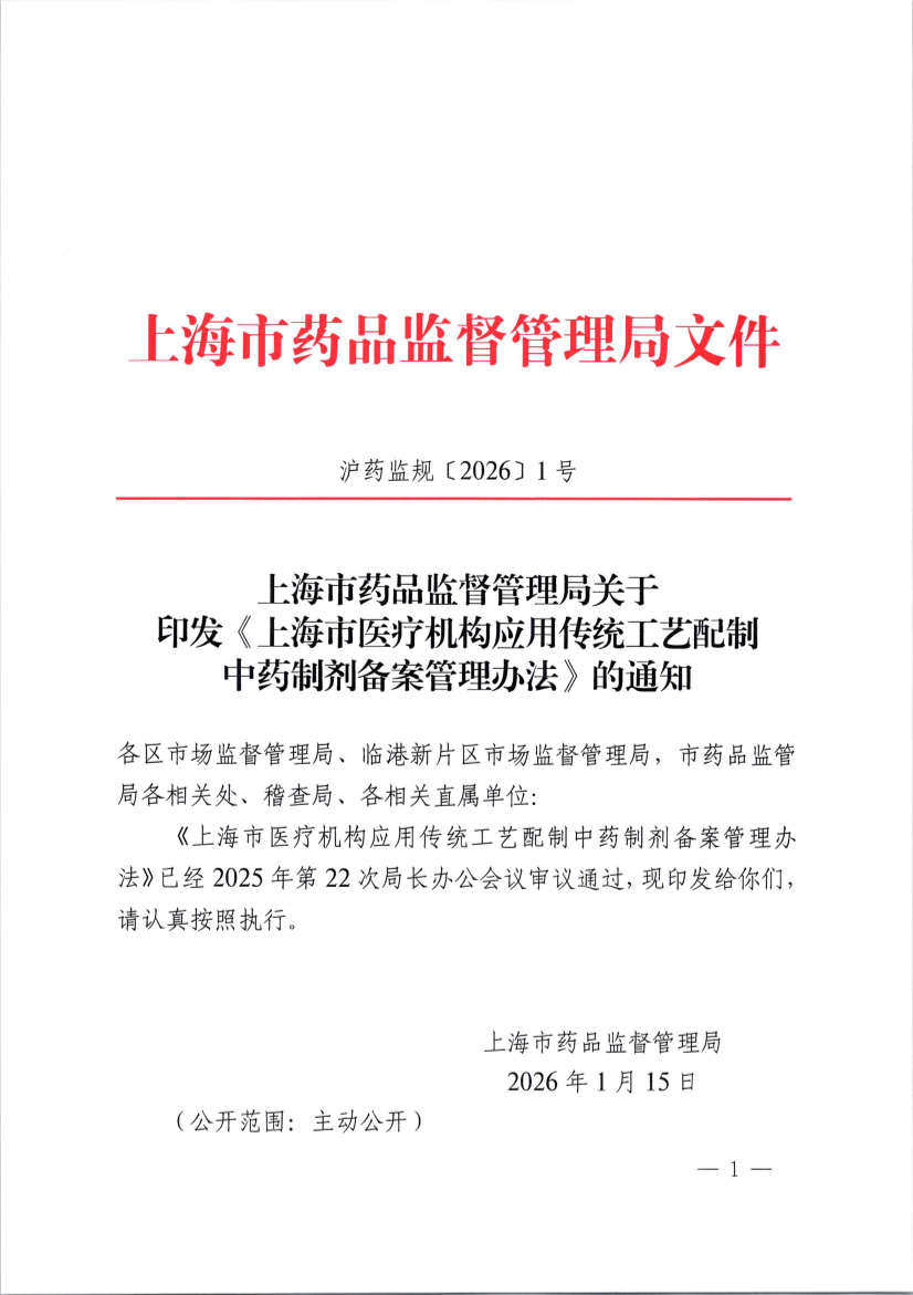 滬藥監(jiān)規(guī)〔2026〕1號(hào)
