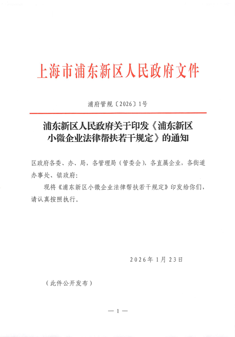關(guān)于印發(fā)《浦東新區(qū)小微企業(yè)法律幫扶若干規(guī)定》的通知