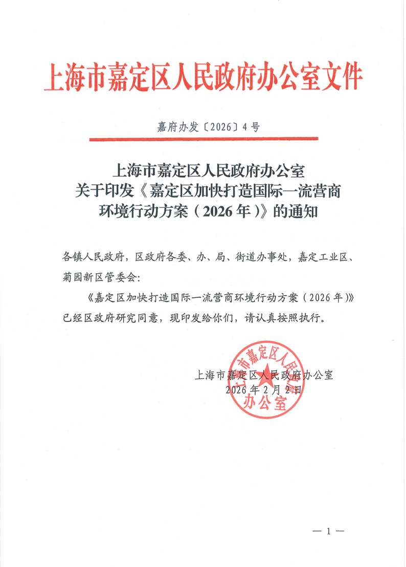關(guān)于印發(fā)《嘉定區(qū)加快打造國(guó)際一流營(yíng)商環(huán)境行動(dòng)方案(2026年)》的通知