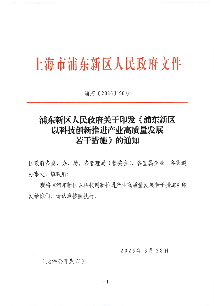 關(guān)于印發(fā)《浦東新區(qū)以科技創(chuàng)新推進(jìn)產(chǎn)業(yè)高質(zhì)量發(fā)展若干措施》的通知