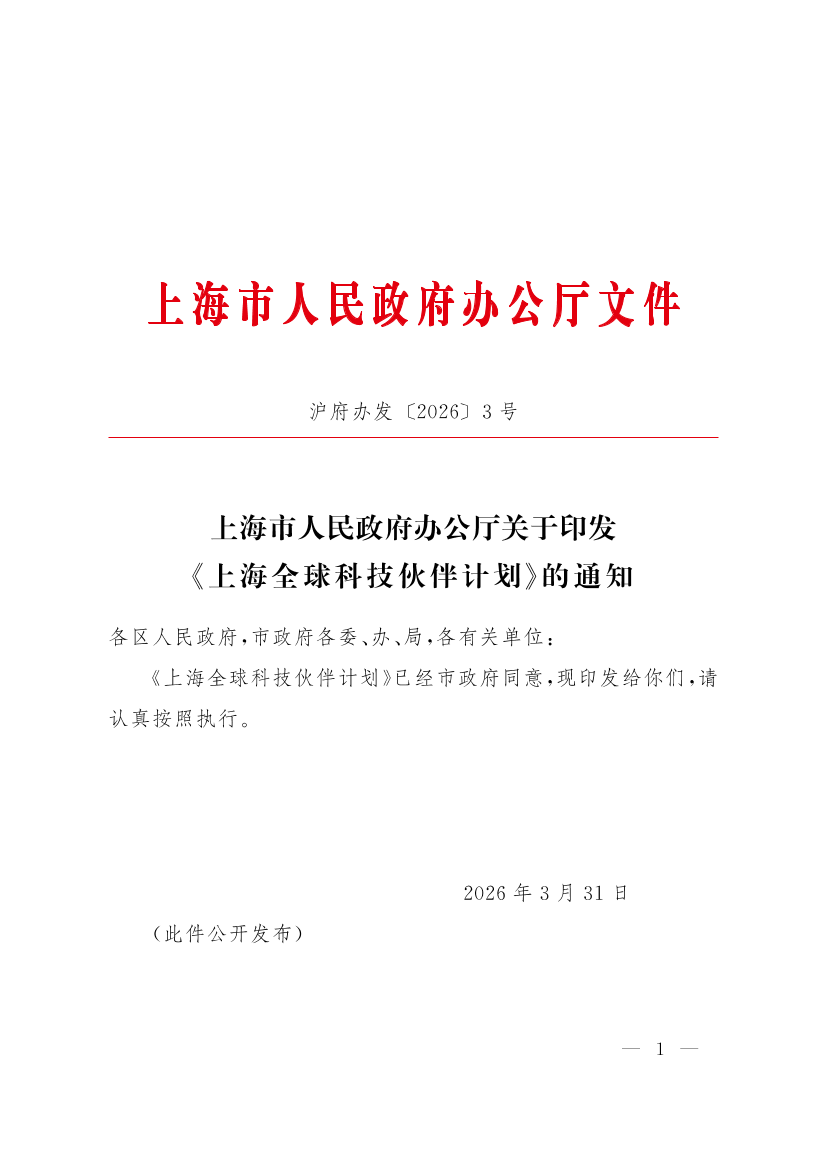 上海市人民政府辦公廳關(guān)于印發(fā)《上海全球科技伙伴計劃》的通知
