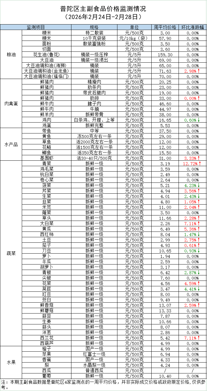普陀區(qū)主副食品價(jià)格監(jiān)測情況 (2026年3月2日)