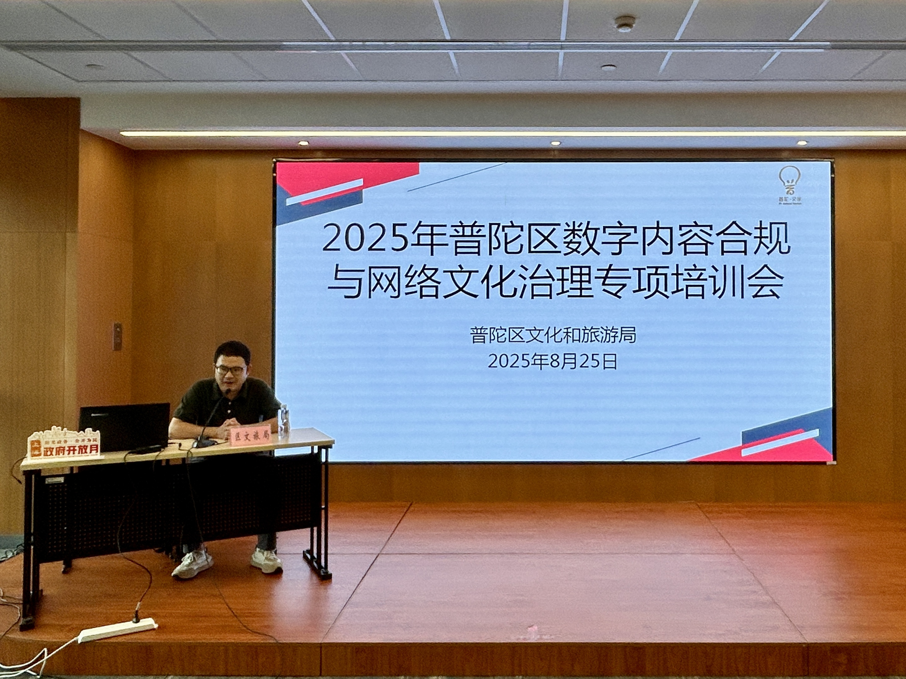普陀區(qū)文旅局舉辦2025年度數(shù)字內(nèi)容合規(guī)與網(wǎng)絡(luò)文化治理專項(xiàng)培訓(xùn) 2025-08-26 來源:普陀區(qū)人民政府