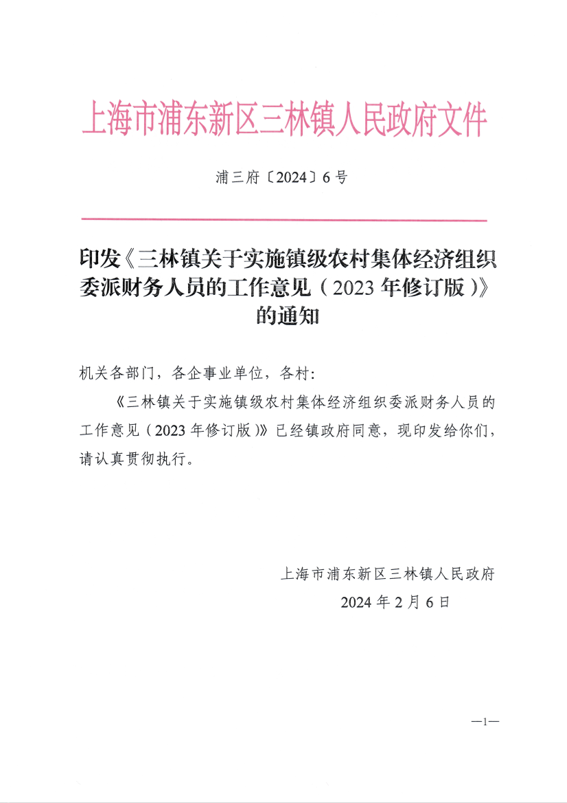 三林鎮(zhèn)關(guān)于實(shí)施鎮(zhèn)級農(nóng)村集體經(jīng)濟(jì)組織委派財(cái)務(wù)人員的工作意見(2023年修訂版)
