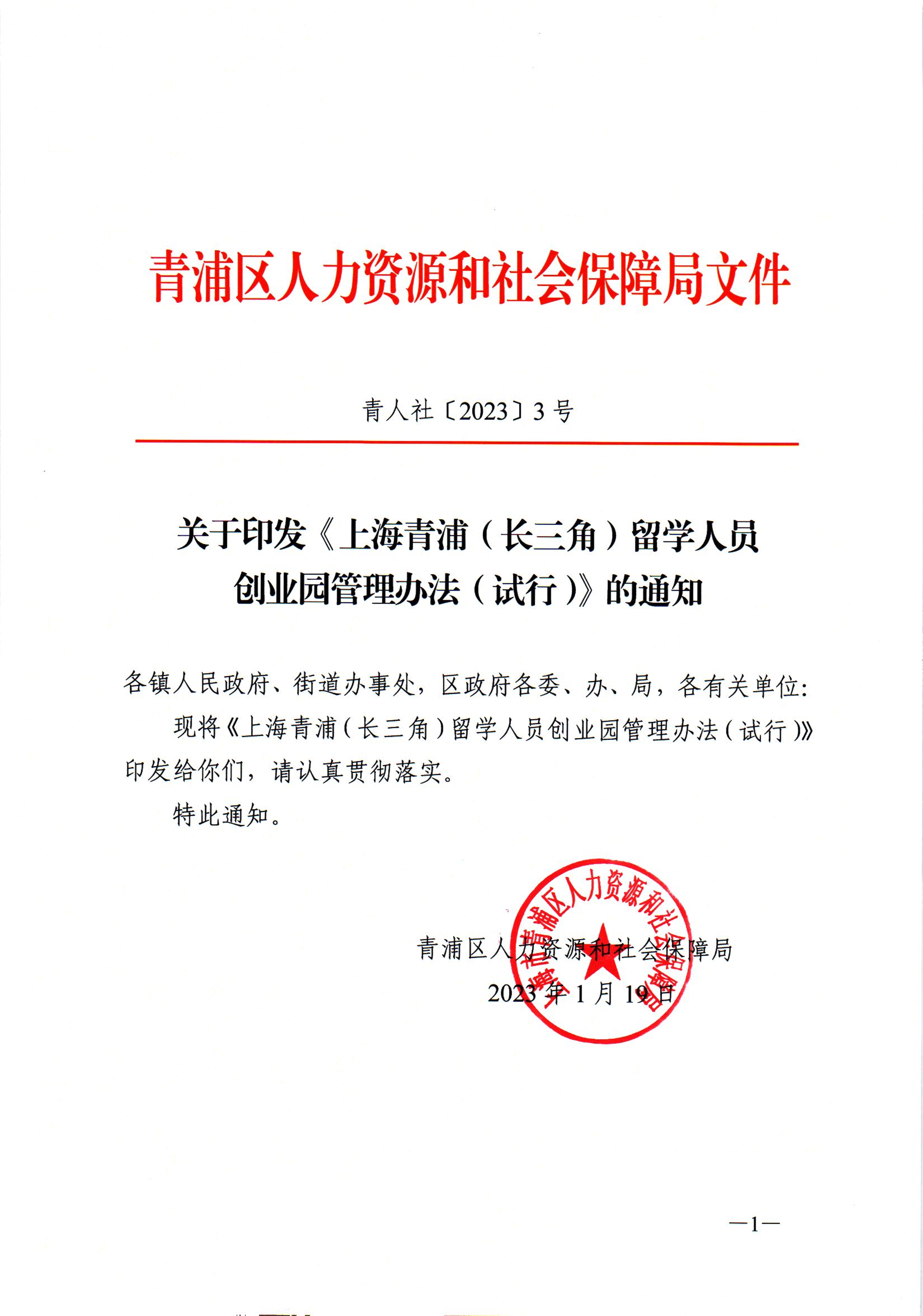 關(guān)于印發(fā)《上海青浦(長(zhǎng)三角)留學(xué)人員創(chuàng)業(yè)園管理辦法》的通知