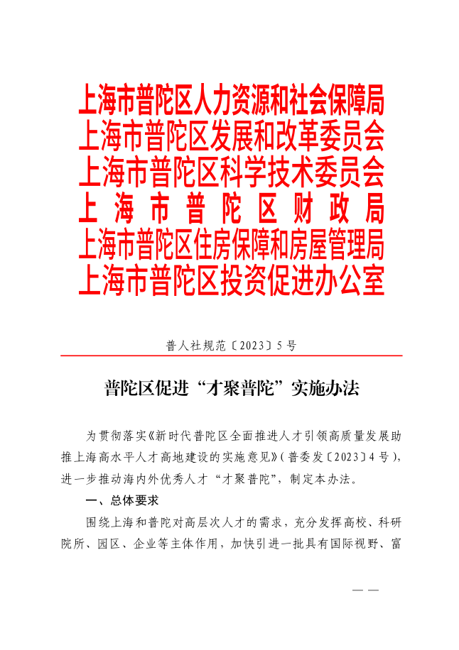 ??為貫徹落實(shí)《新時(shí)代普陀區(qū)全面推進(jìn)人才引領(lǐng)高質(zhì)量發(fā)展助推上海高水平人才高地建設(shè)的實(shí)施意見(jiàn)》(普委發(fā)〔2023〕4號(hào)),進(jìn)一步推動(dòng)海內(nèi)外優(yōu)秀人才“才聚普陀”,制定本辦法。