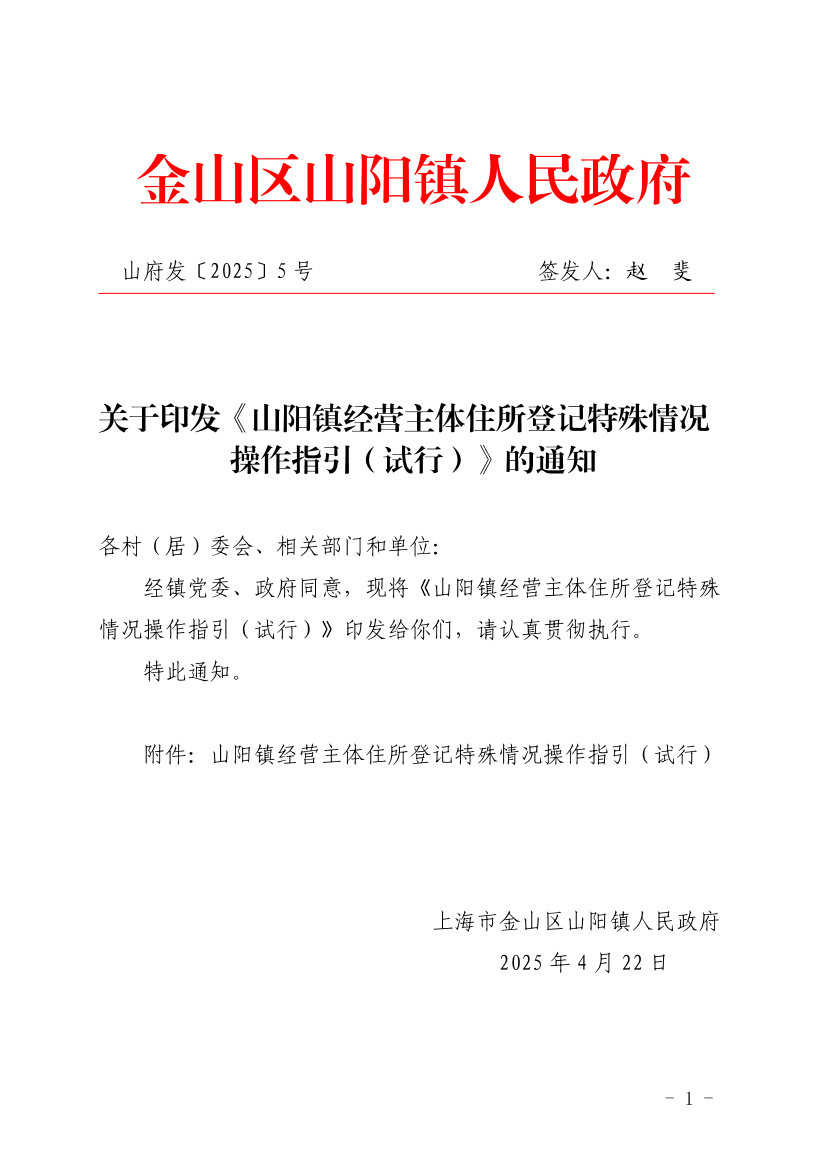 ??經(jīng)鎮(zhèn)黨委、政府同意,現(xiàn)將《山陽(yáng)鎮(zhèn)經(jīng)營(yíng)主體住所登記特殊情況操作指引(試行)》印發(fā)給你們,請(qǐng)認(rèn)真貫徹執(zhí)行。