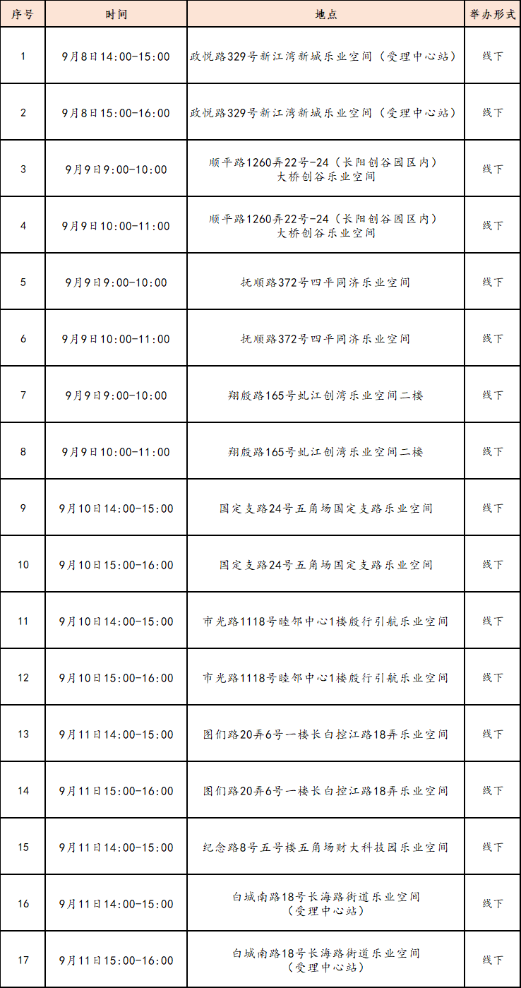 ??“15分鐘就業(yè)服務圈”社區(qū)就業(yè)服務站點建設市政府實事項目作為人社部門常態(tài)化政府開放活動之一,我們將持續(xù)發(fā)布精彩服務內(nèi)容,今天為大家?guī)睃S浦區(qū)、長寧區(qū)、靜安區(qū)、楊浦區(qū)、閔行區(qū)、崇明區(qū)、金山區(qū)、松江區(qū)、青浦區(qū)近期就業(yè)活動安排!