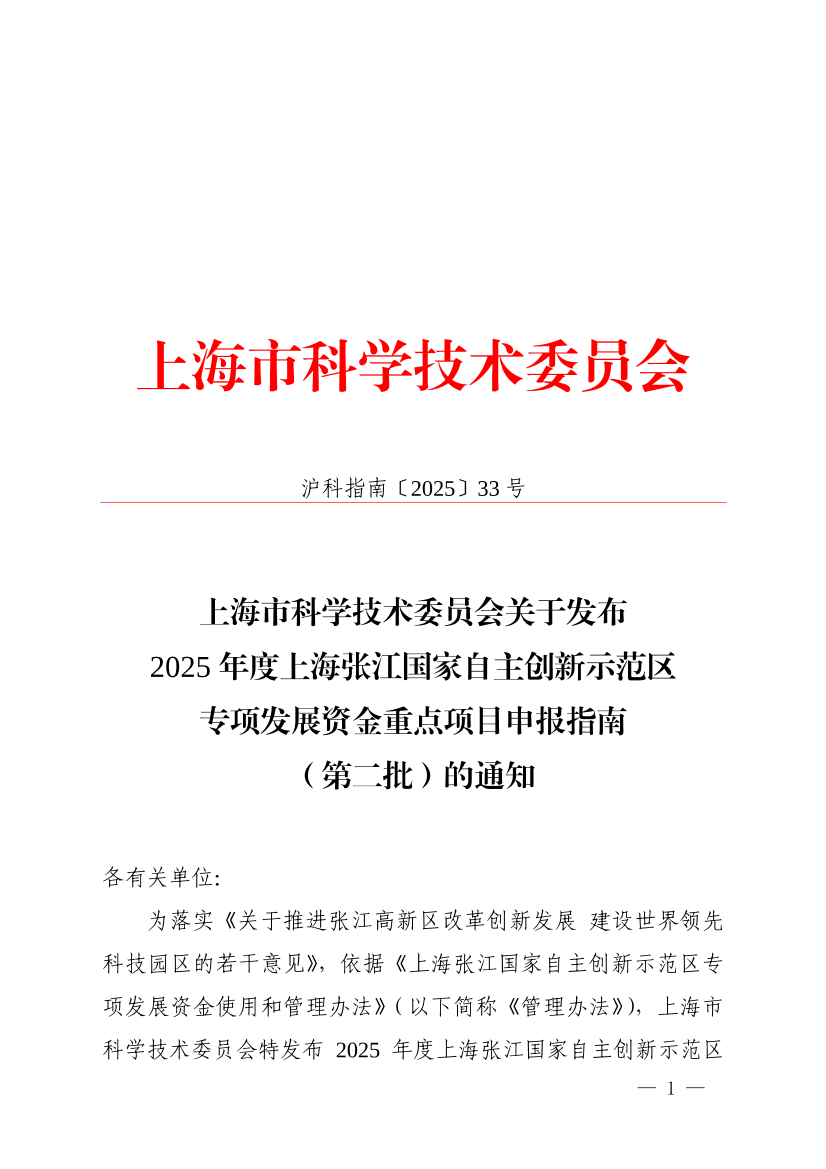 ??為落實《關(guān)于推進(jìn)張江高新區(qū)改革創(chuàng)新發(fā)展 建設(shè)世界領(lǐng)先科技園區(qū)的若干意見》,依據(jù)《上海張江國家自主創(chuàng)新示范區(qū)專項發(fā)展資金使用和管理辦法》(以下簡稱《管理辦法》),上海市科學(xué)技術(shù)委員會特發(fā)布2025年度上海張江國家自主創(chuàng)新示范區(qū)專項發(fā)展資金(以下簡稱“張江專項資金”)重點項目申報指南(第二批)。