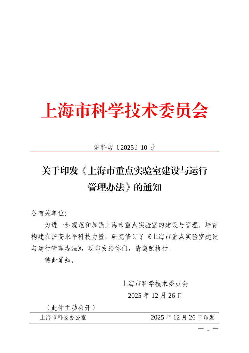 ??第三十六條 本辦法自2026年1月1日起實(shí)施,有效期至2030年12月31日。原《上海市重點(diǎn)實(shí)驗(yàn)室建設(shè)與運(yùn)行管理辦法》(滬科規(guī)〔2022〕6號(hào))廢止。