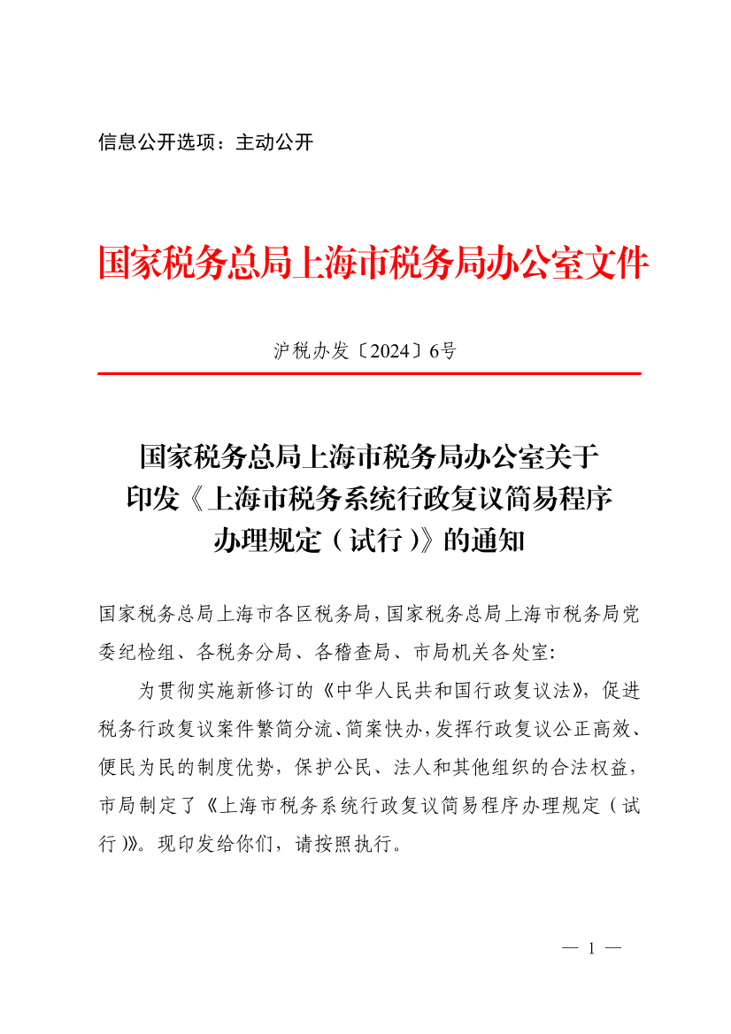 上海市稅務(wù)系統(tǒng)行政復(fù)議簡(jiǎn)易程序辦理規(guī)定(試行)