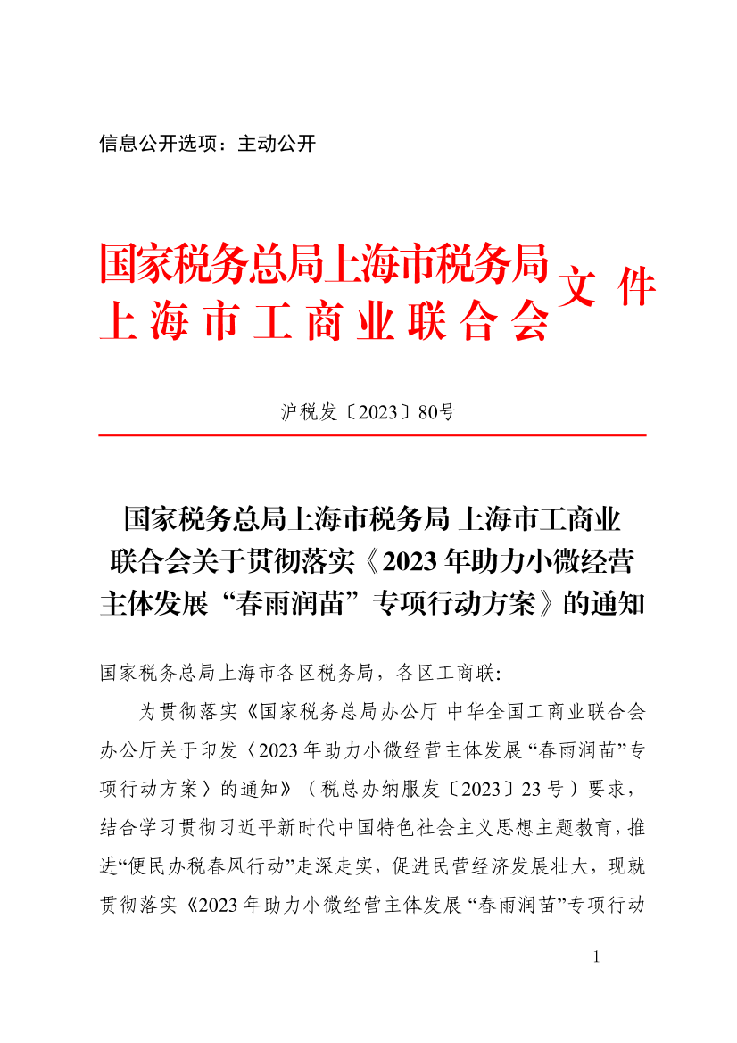 ??為貫徹落實(shí)《國家稅務(wù)總局辦公廳 中華全國工商業(yè)聯(lián)合會(huì)辦公廳關(guān)于印發(fā)〈2023年助力小微經(jīng)營主體發(fā)展 “春雨潤(rùn)苗”專項(xiàng)行動(dòng)方案〉的通知》(稅總辦納服發(fā)〔2023〕23號(hào))要求,結(jié)合學(xué)習(xí)貫徹習(xí)近平新時(shí)代中國特色社會(huì)主義思想主題教育,推進(jìn)“便民辦稅春風(fēng)行動(dòng)”走深走實(shí),促進(jìn)民營經(jīng)濟(jì)發(fā)展壯大,現(xiàn)就貫徹落實(shí)《2023年助力小微經(jīng)營主體發(fā)展 “春雨潤(rùn)苗”專項(xiàng)行動(dòng)方案》有關(guān)事宜通知如下。