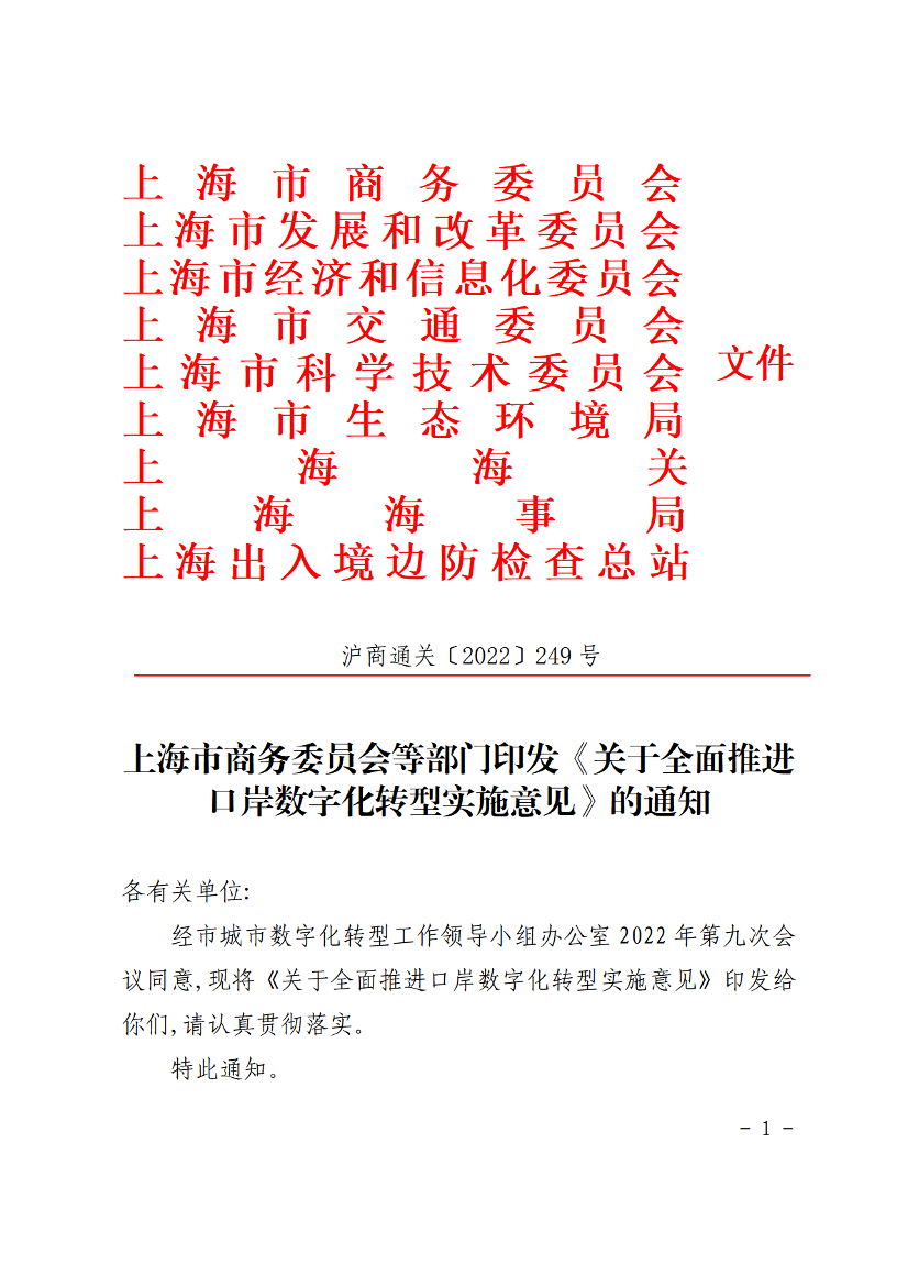 ??為全面推進(jìn)本市智慧口岸建設(shè),根據(jù)市委、市政府《關(guān)于全面推進(jìn)上海城市數(shù)字化轉(zhuǎn)型的意見》(滬委發(fā)〔2020〕35號(hào))《推進(jìn)上海經(jīng)濟(jì)數(shù)字化轉(zhuǎn)型 賦能高質(zhì)量發(fā)展行動(dòng)方案(2021-2023年)》(滬數(shù)字化辦〔2021〕1號(hào))和《全面推進(jìn)上海數(shù)字商務(wù)高質(zhì)量發(fā)展實(shí)施意見》(滬商電商〔2021〕121號(hào))等要求,特制定本實(shí)施意見。