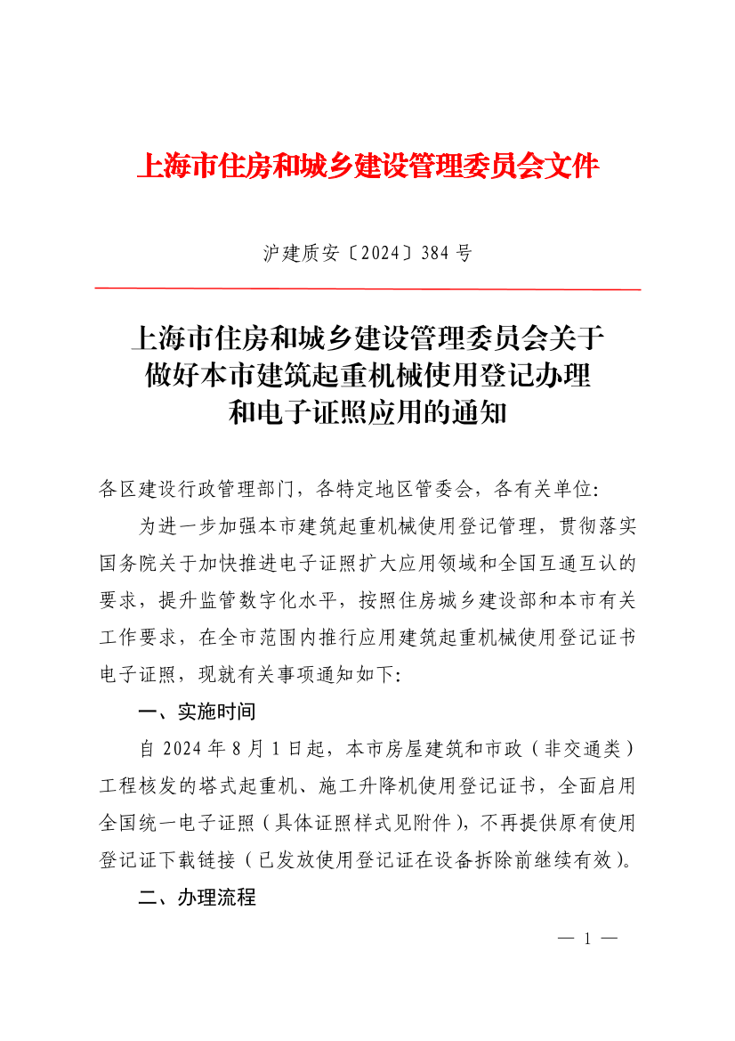 ??自2024年8月1日起,本市房屋建筑和市政(非交通類)工程核發(fā)的塔式起重機(jī)、施工升降機(jī)使用登記證書(shū),全面啟用全國(guó)統(tǒng)一電子證照(具體證照樣式見(jiàn)附件),不再提供原有使用登記證下載鏈接(已發(fā)放使用登記證在設(shè)備拆除前繼續(xù)有效)。