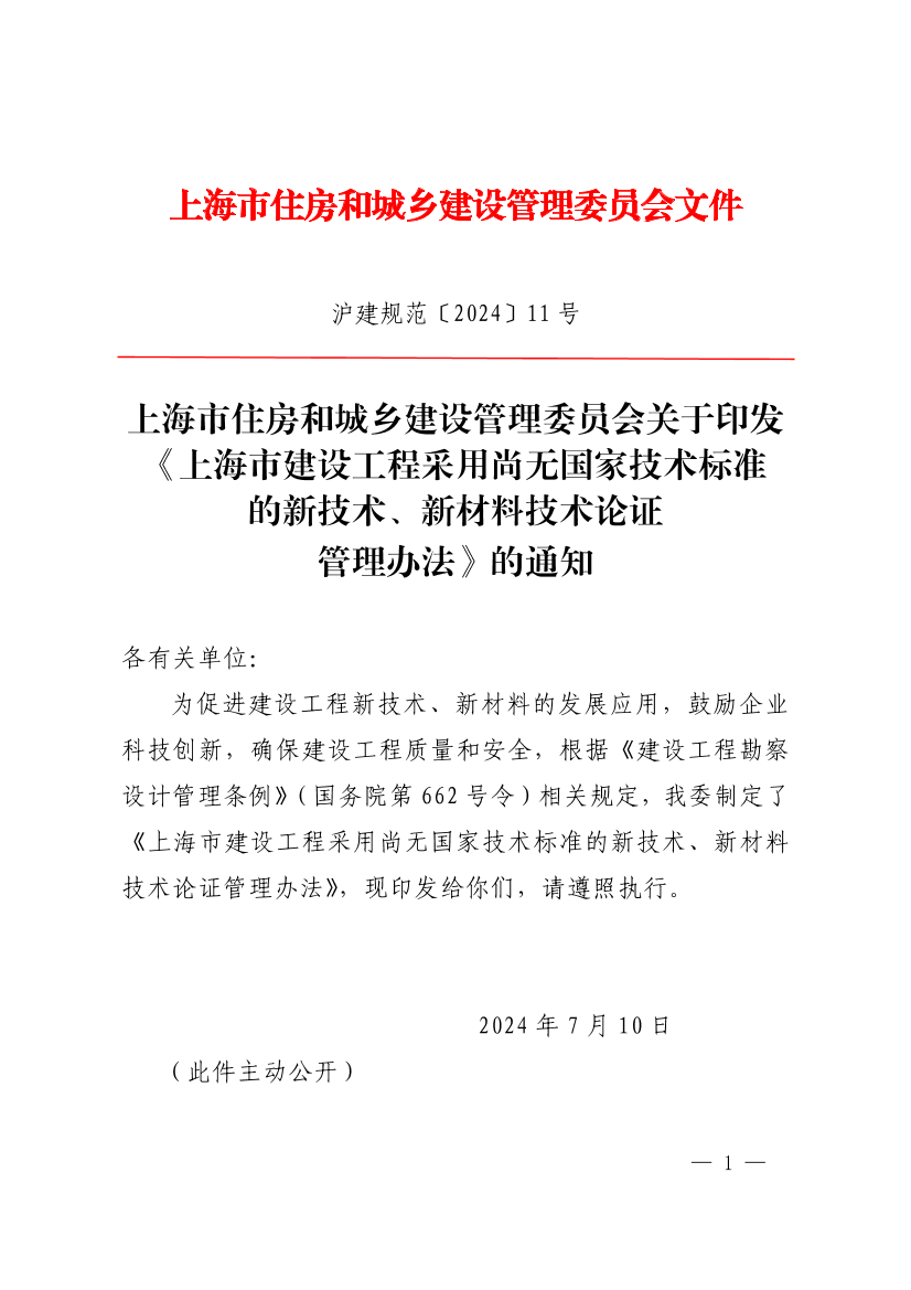上海市住房和城鄉(xiāng)建設(shè)管理委員會關(guān)于印發(fā)《上海市建設(shè)工程采用尚無國家技術(shù)標(biāo)準(zhǔn)的新技術(shù)、新材料技術(shù)論證管理辦法》的通知