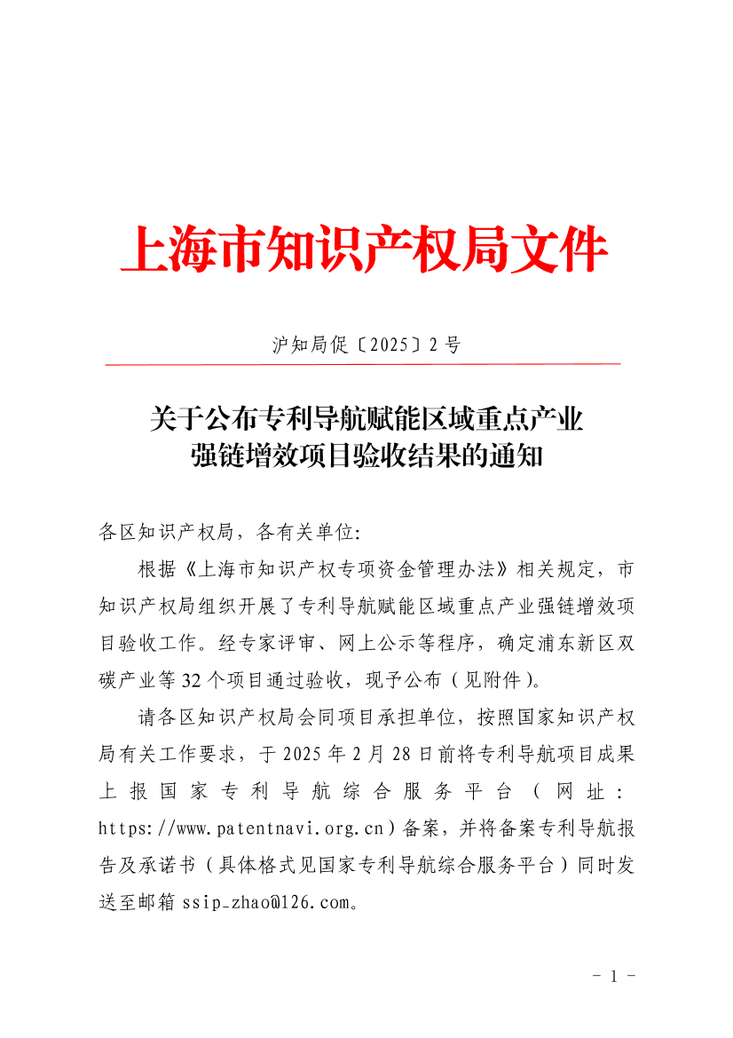 ??根據(jù)《上海市知識產(chǎn)權(quán)專項資金管理辦法》相關(guān)規(guī)定,市知識產(chǎn)權(quán)局組織開展了專利導(dǎo)航賦能區(qū)域重點產(chǎn)業(yè)強鏈增效項目驗收工作。經(jīng)專家評審、網(wǎng)上公示等程序,確定浦東新區(qū)雙碳產(chǎn)業(yè)等32個項目通過驗收,現(xiàn)予公布(見附件)。
