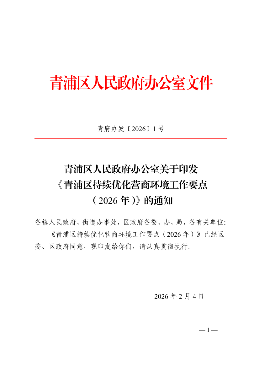 ??《青浦區(qū)持續(xù)優(yōu)化營商環(huán)境工作要點(2026年)》已經(jīng)區(qū)委、區(qū)政府同意,現(xiàn)印發(fā)給你們,請認真貫徹執(zhí)行。