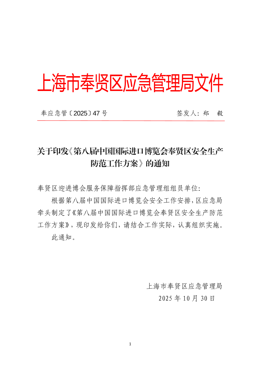 第八屆中國國際進(jìn)口博覽會奉賢區(qū)安全生產(chǎn)防范工作方案